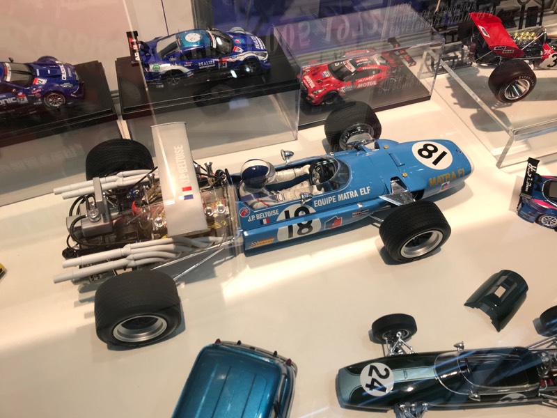 ニュルンベルグトイショー、CMCなどの新製品情報は本店ブログにお任せしますけれど、今回個人的に楽しみになったのはエブロさんが発表したマトラMS11F1の再販ですかね。ご存知の通り元々タミヤのキットでありますが、木谷さんのお話ですと、タミヤではマトラの金型を破棄しようと(えー!?)考えていたので、木谷さんが会長に談判してエブロに譲渡してもらったとの事。流石に本当に破棄はないような気がしますが、長らく再販のなかったマトラのキットが手に入る見込みになったのは喜ばしい事ですね。あと、これもまだ考えている程度のことで実際の予定ではないのですが、オフレコにしなくてもいいよという事で、今後このキットを使ったパーツ追加バリエーションも考えているとの事です。まあ具体的にいうとエンジンがマトラと違うチームの車、という事だそうで、まあいつの話になるかは全くわかりませんが、皆さんもMS11の再販がかかったらまず買っていただけると道も開けるかと思います(^^)