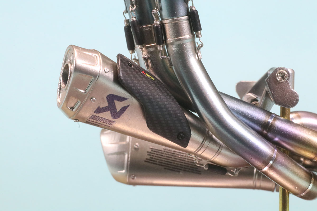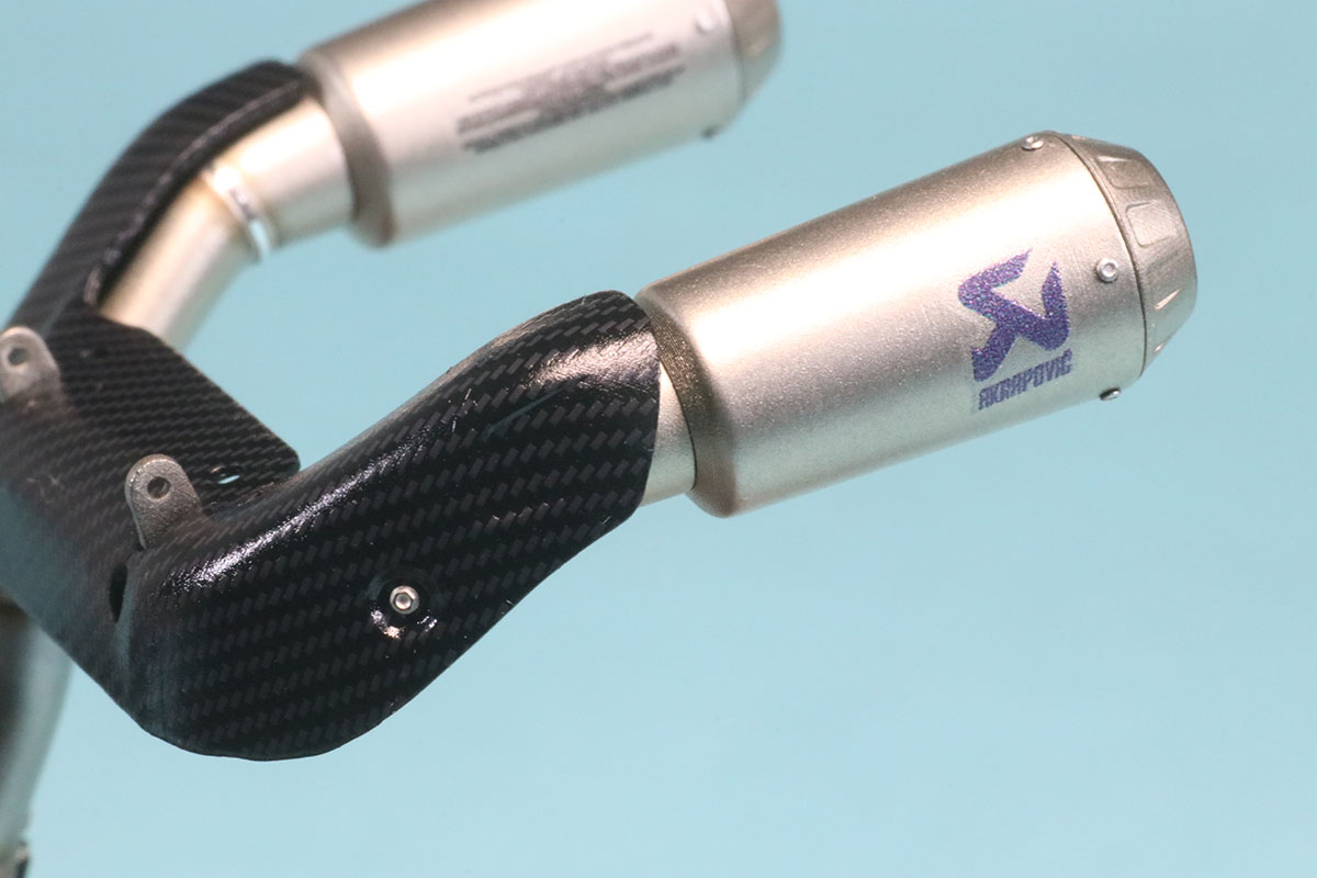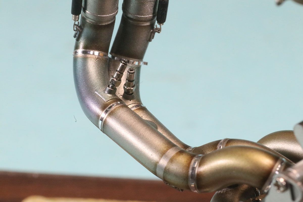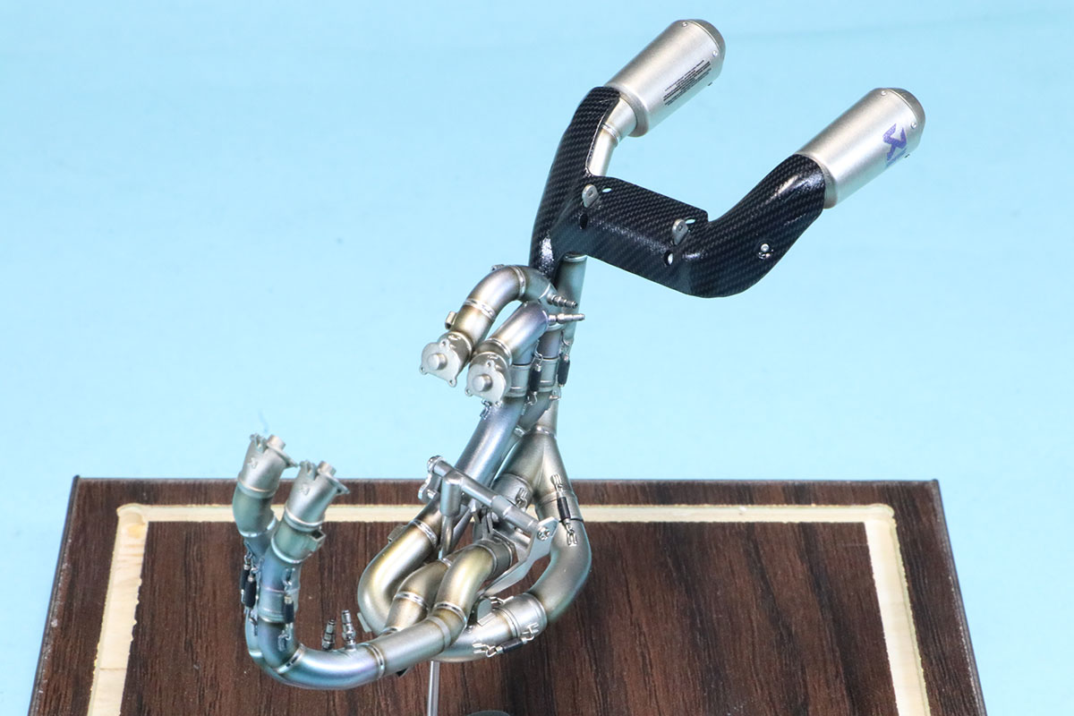 次回新製品予定であるパニガーレ V4SとV4R 対応のエグゾーストパーツもV4 レーシングエグゾーストと合わせて実際に組み上げたサンプルも撮影させてもらうことができましたのでご紹介いたします。