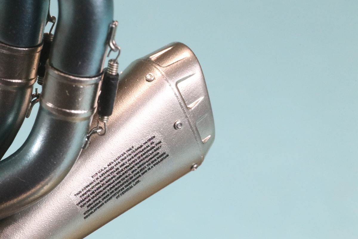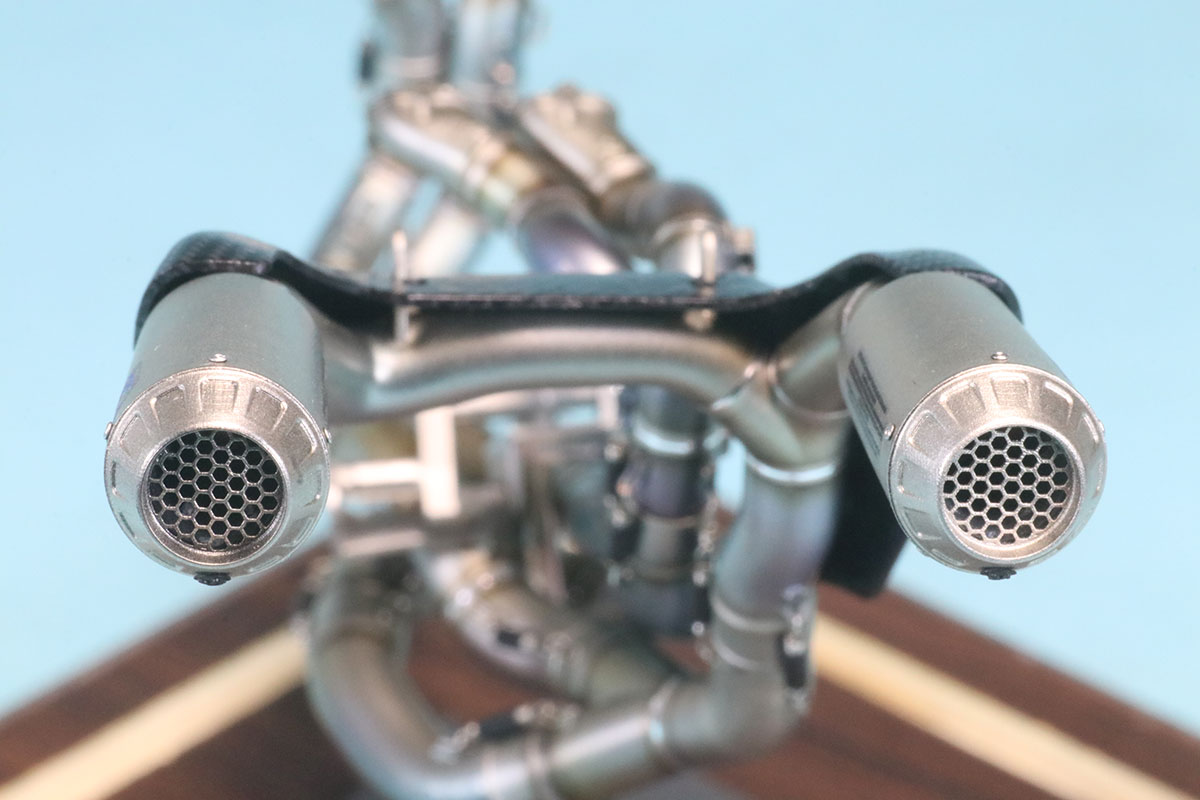 実際に物を見た第一印象はカッコイイの一言につきました。もちろんリアルも追求されていてマフラー単体で飾っても形になるキットだと思います。単体でも飾っても組み込んで飾ってもよしのマフラーパーツはそうそうありません。マフラーは焼け具合の再現などモデラーさんの感性が特徴的に現れる部分なのでぜひとも組み込んでいただきたいキットです。