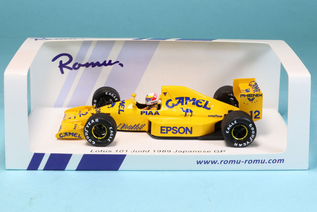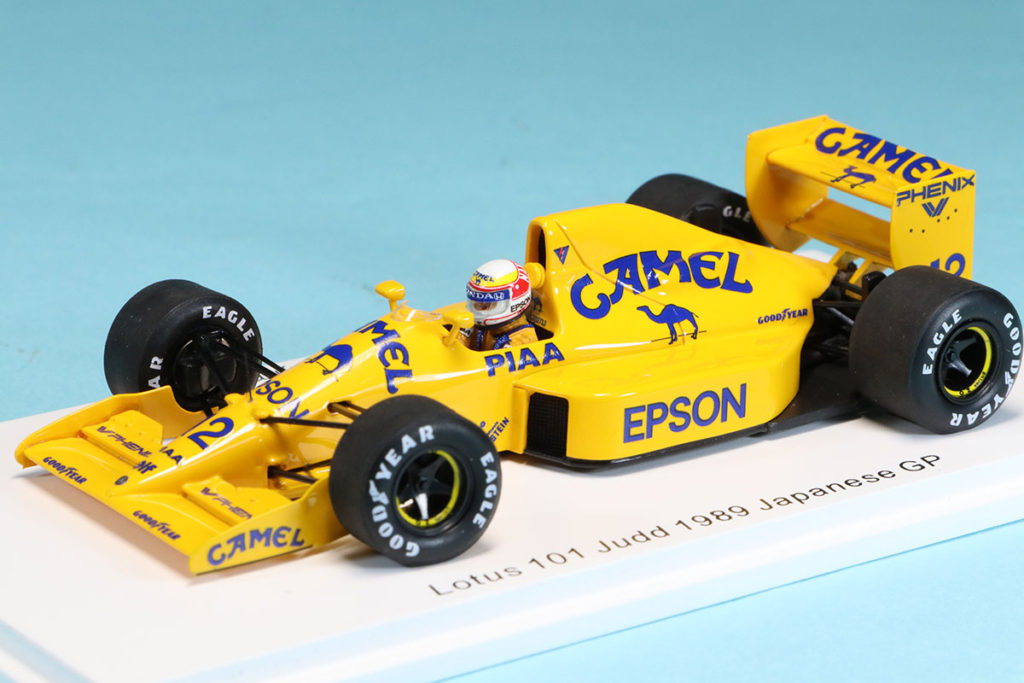 日本グランプリ仕様のロータス101はこのグランプリのみのフェニックスのスポンサーロゴが各部に追加された他のレースとは大きく見た目の印象が異なりますのでコレクションの中でも目立つ必携の一台となります。
