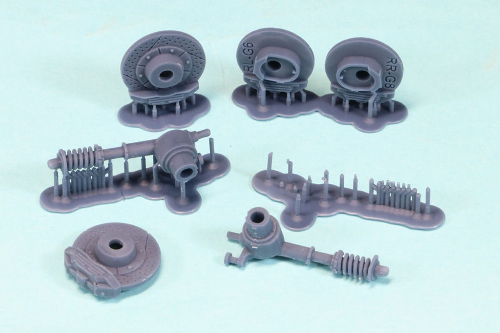 そしてパーツを確認してなにより驚いたのは、サスのバネが独立していることです。拘ってますね〜。パーツは洗浄済みなのでそのままサフを吹いて塗装できます。
