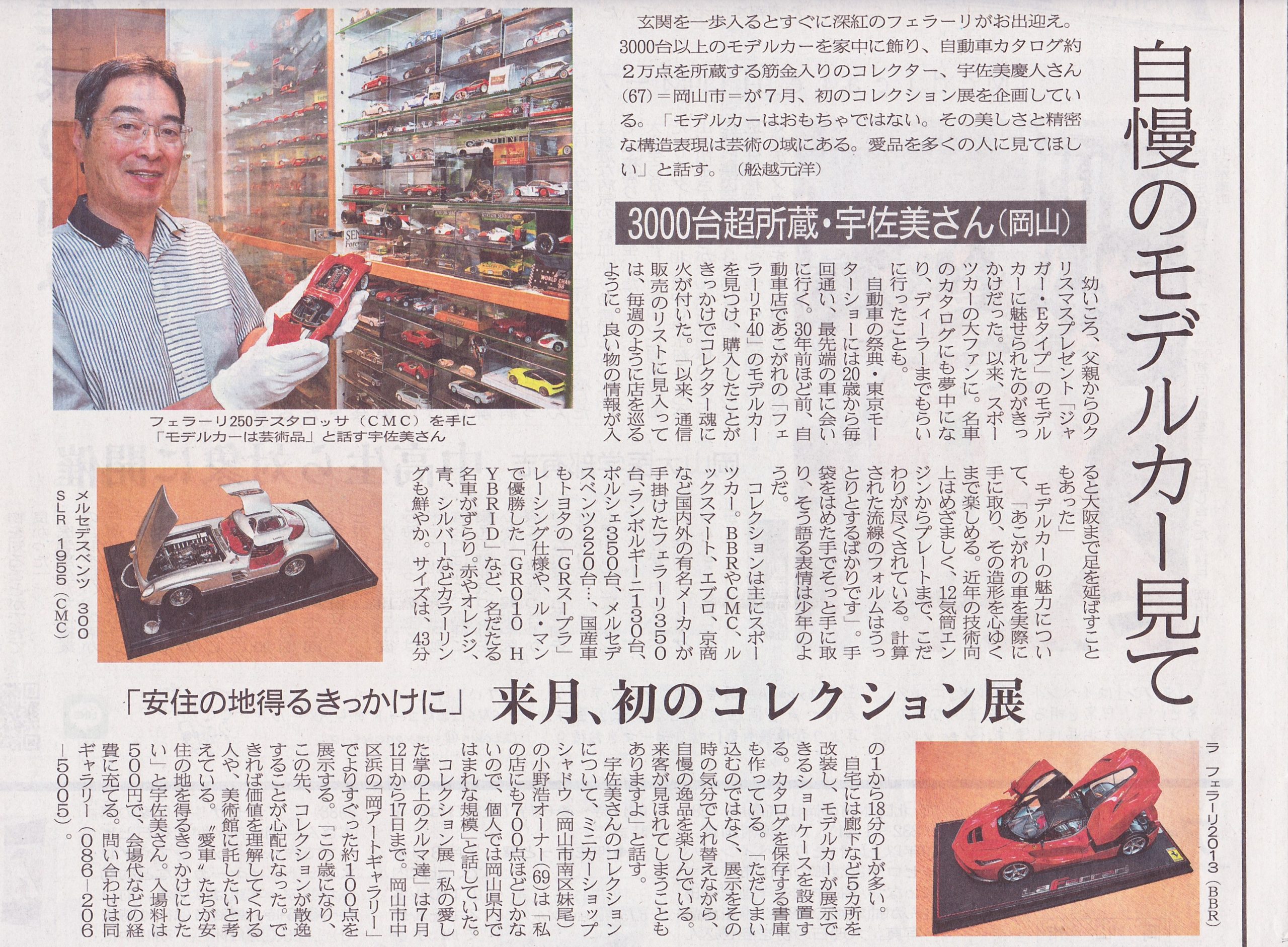 次週6月26日から7月1日の期間、岡山駅にほど近い岡アートギャラリーにて、宇佐美慶人氏のモデルカーコレクション展『私の愛した掌の上のクルマ達FERRARI編』が開催されます。