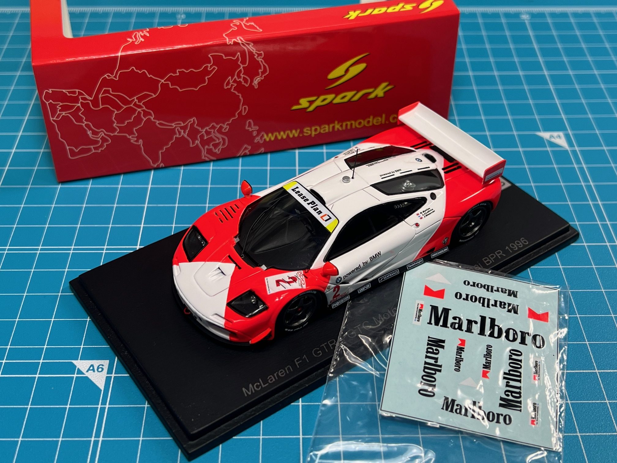 マクラーレンF1 GTR マルボロカラーという事で色々なメーカーからモデル化されていますが、スパークモデルからは初モデル化です。マルボロロゴはデカール添付になっています。