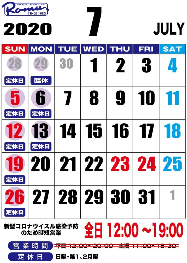 7月の営業日時について
